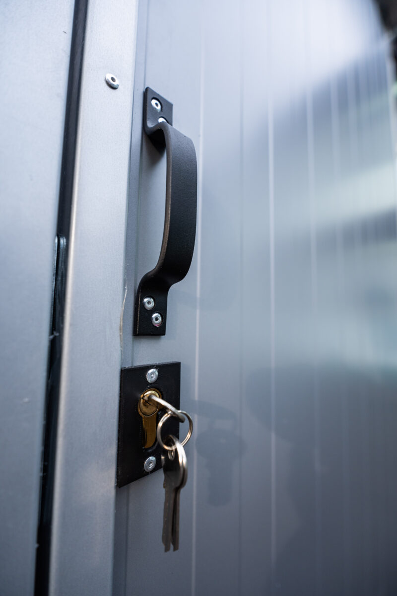Funkcjonalność i bezpieczeństwo – regulowane nóżki z możliwością zakotwienia, drzwi na solidnych zawiasach i zamek chroniący dostęp.