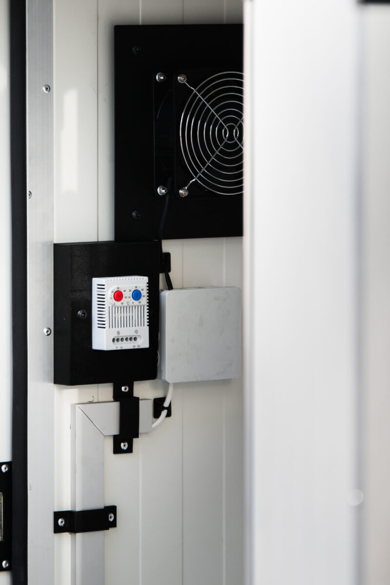 Bezpieczna eksploatacja – standardowo wyposażona w wentylację oraz matę grzewczą, które zapewniają optymalną temperaturę pracy magazynu energii.